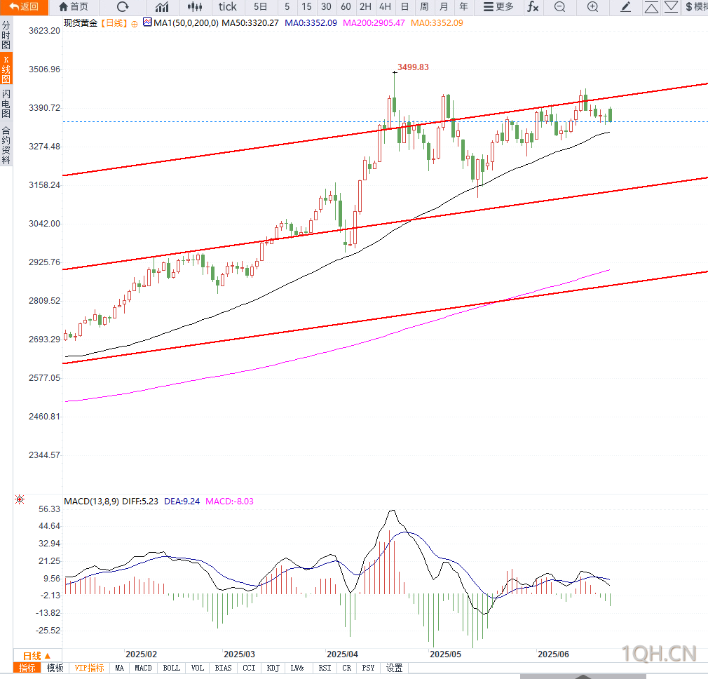 短线来看,金价若未能突破3400美元,则震荡整理格局将延续,重点关注通道支撑的得失。密切留意全球PMI数据及美伊局势进展,谨防技术面破位后加剧调整。,