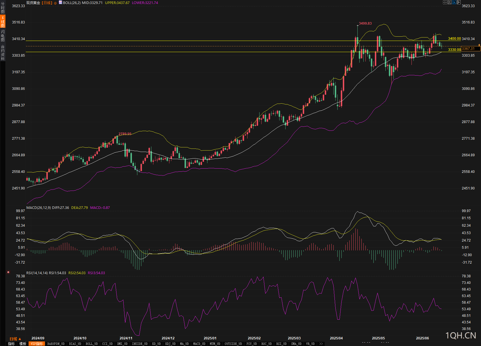 技术面总结:当前黄金价格的震荡整理并未改变其技术面上的总体上升趋势。虽然3400美元关口仍然存在一定压力,但从长远来看,黄金的价格走势依然健康,回调后的再度上涨依然可期。
