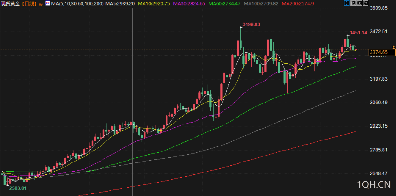现货金下跌 0.4%,至每盎司 3374.75 美元。美国期金结算价上涨 0.03%,报3408.1 美元。