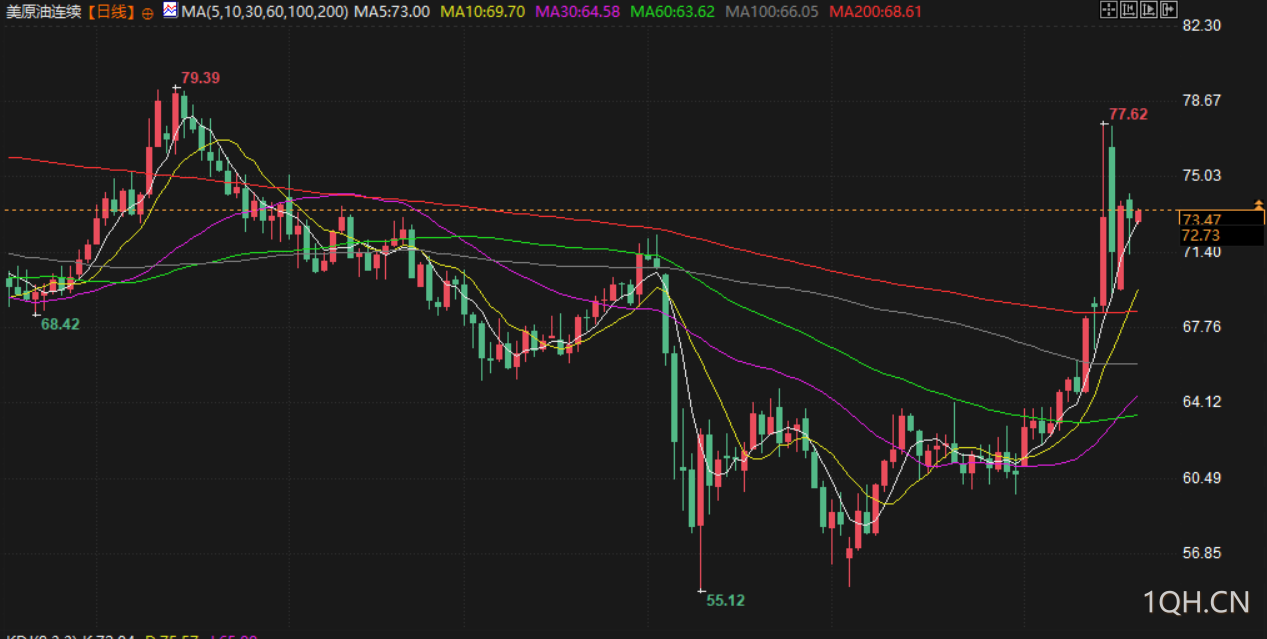 布伦特原油期货收高 25 美分,报每桶76.70 美元。美国原油上涨30美分,报75.14美元。本交易日早些时候,原油价格下跌了约 2%。周二,价格跳涨超 4%。伊朗最高领袖哈梅内伊拒绝了美国总统特朗普无条件投降的要求,特朗普表示他的耐心已经耗尽,但没有表明下一步将采取什么措施。