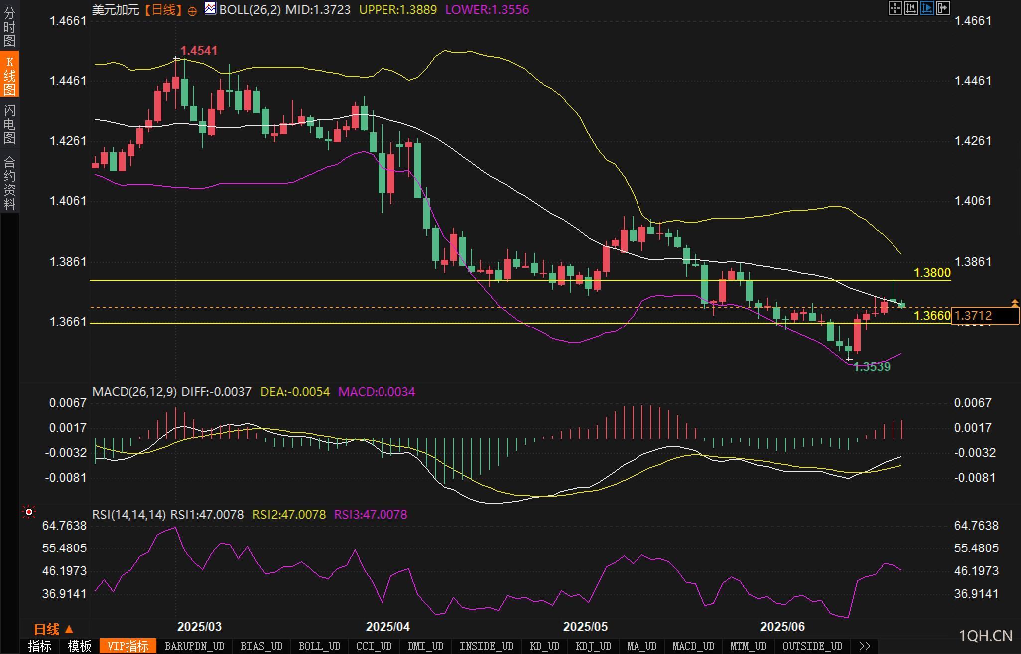 但若再次受阻于1.3723,并跌回1.3660下方,则短线反弹宣告失败,行情可能重回震荡箱体下沿甚至再探1.3539低点。
