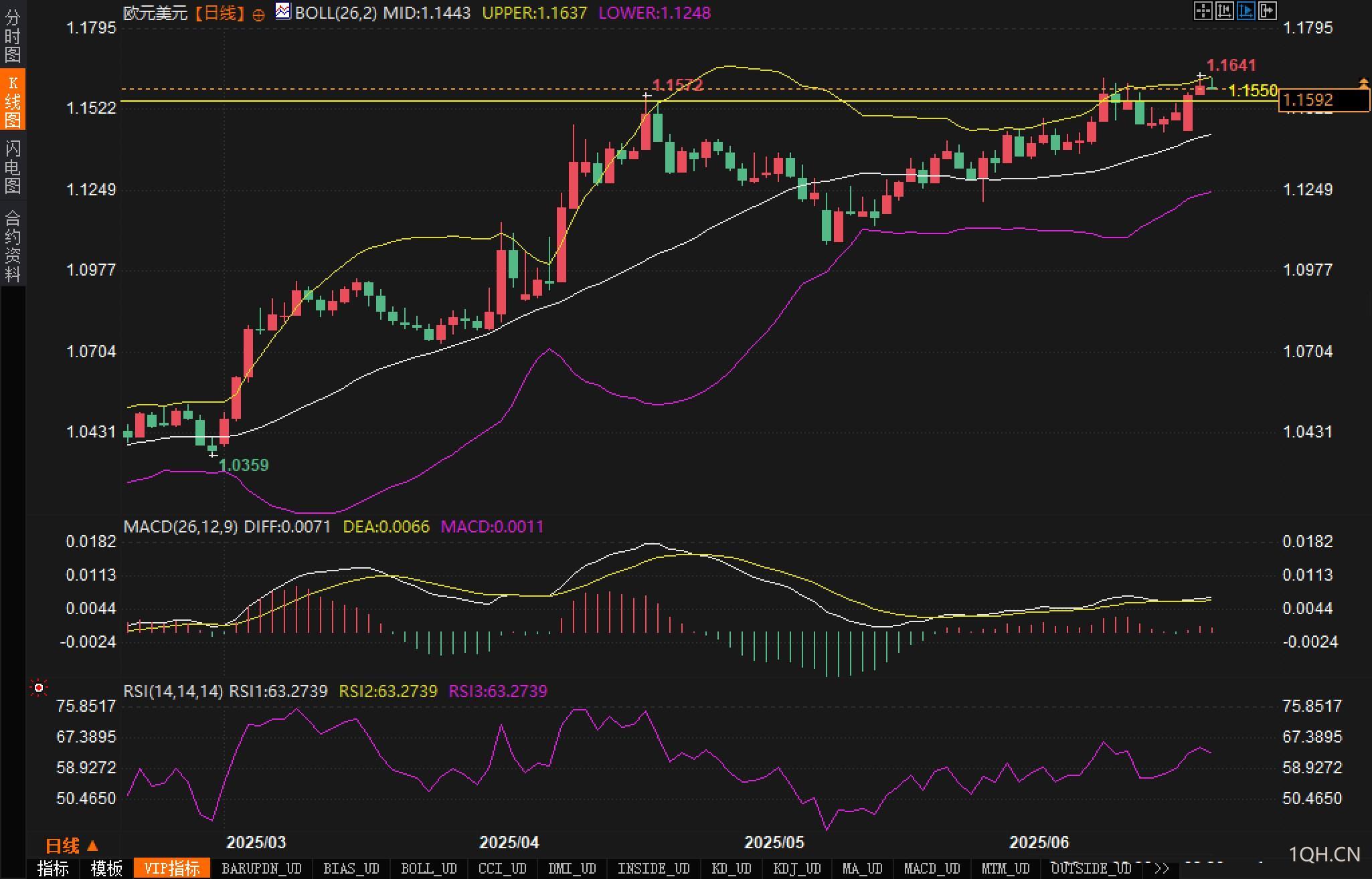 近期市场情绪维持温和乐观,风险偏好主导下,美元作为避险资产持续走软,推动欧元上行。但分析认为需警惕的变量在于中东地缘政治的突变性。虽然当前停火形势维持,但美方评估认为伊朗核计划受损有限,未来事态存在升级可能,或重新点燃避险需求,压制欧元走势。