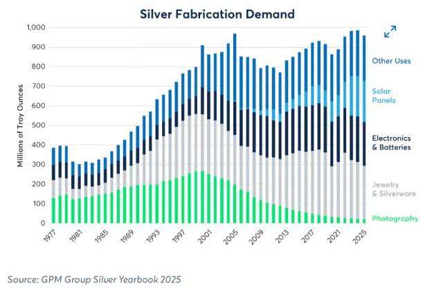 图5:不像黄金,白银有许多工业用途