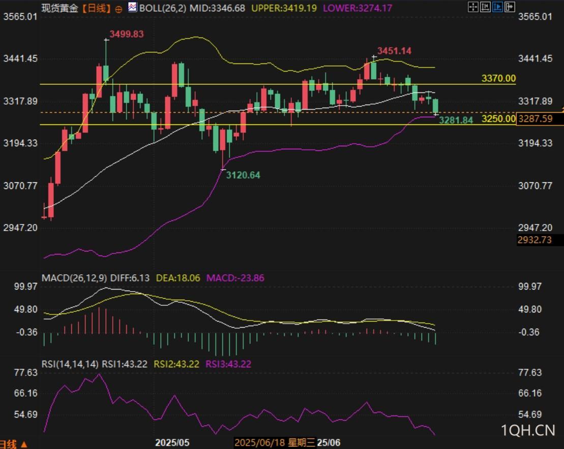 中期角度而言,金价仍处在宽幅震荡箱体内(约在3250-3450美元区间),分析认为若宏观利率与通胀路径未明朗,黄金或继续维持振荡整理格局。需等待新的驱动因子(如美联储明确政策方向或市场避险升温)引导价格突破方向。,