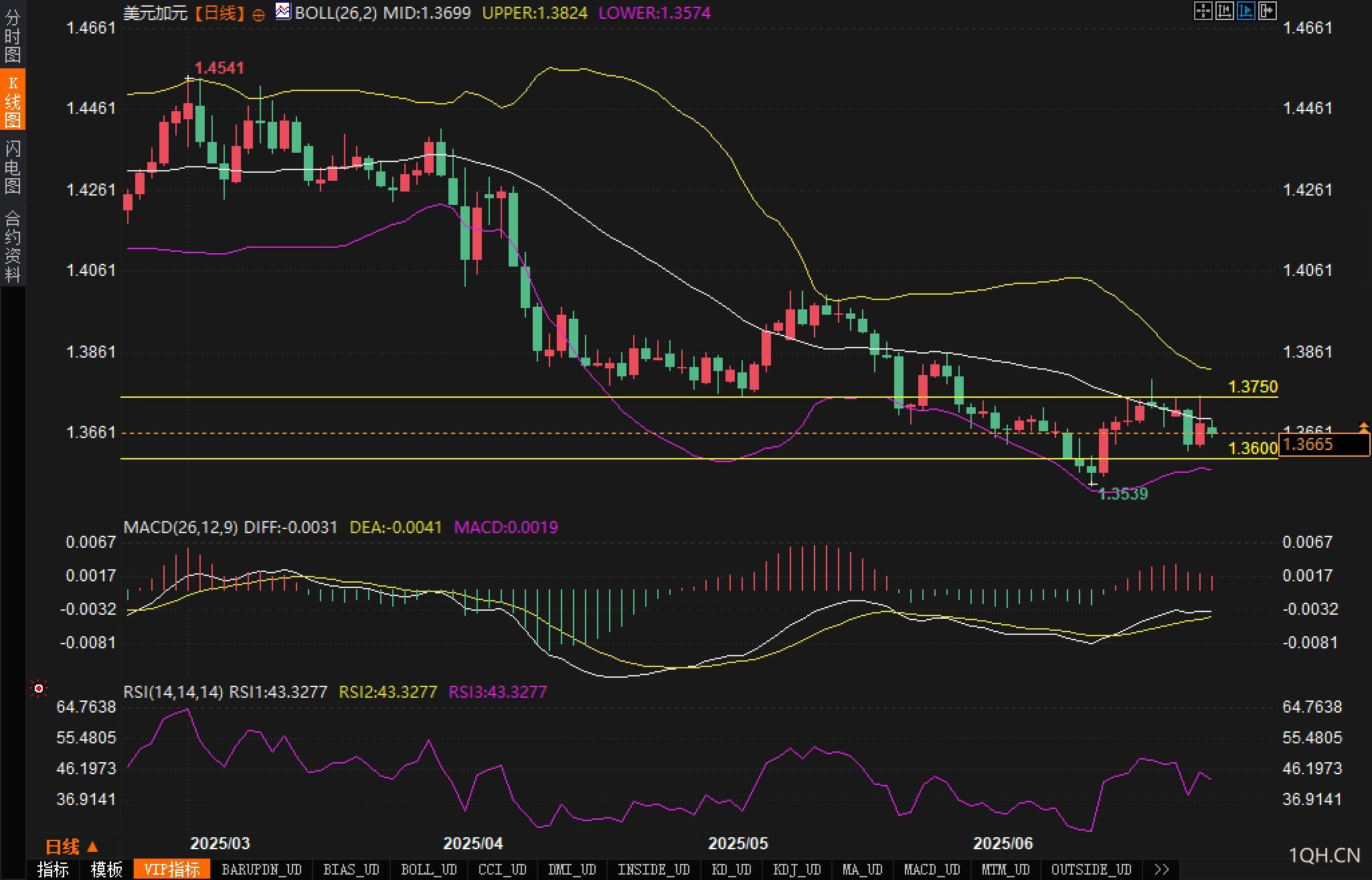 值得注意的是,分析认为若后市站上布林中轨并突破上方阻力1.3750,或将引发短线的技术性反弹,届时可关注布林上轨1.3824的潜在压制。