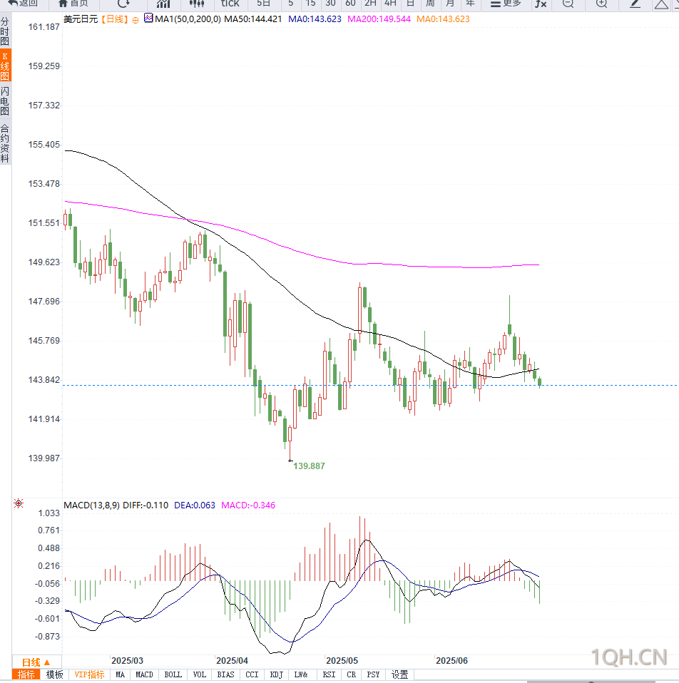 若跌破143.75上周低点,将加速下行测试143.00与142.75-142.70关键支撑区间。