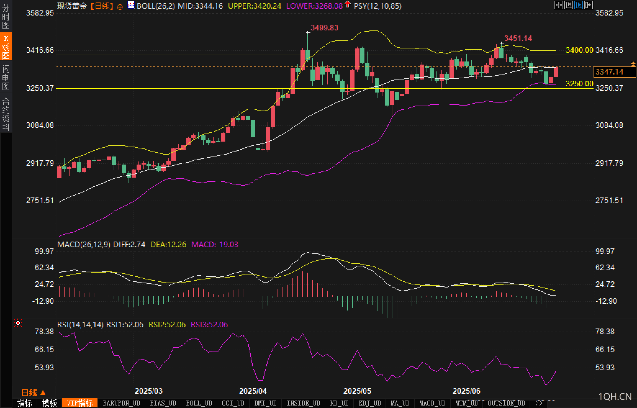 短期来看分析认为,黄金价格若能守稳布林中轨3344美元上方,则有望重新吸引趋势交易资金介入,挑战3400美元区域阻力。一旦有效突破3400美元关口,或将打开进一步上行空间,目标看至3451美元,甚至前高3499美元。反之,若未能守住3250美元支撑,则需警惕进一步回撤至3200美元甚至下方支撑带。