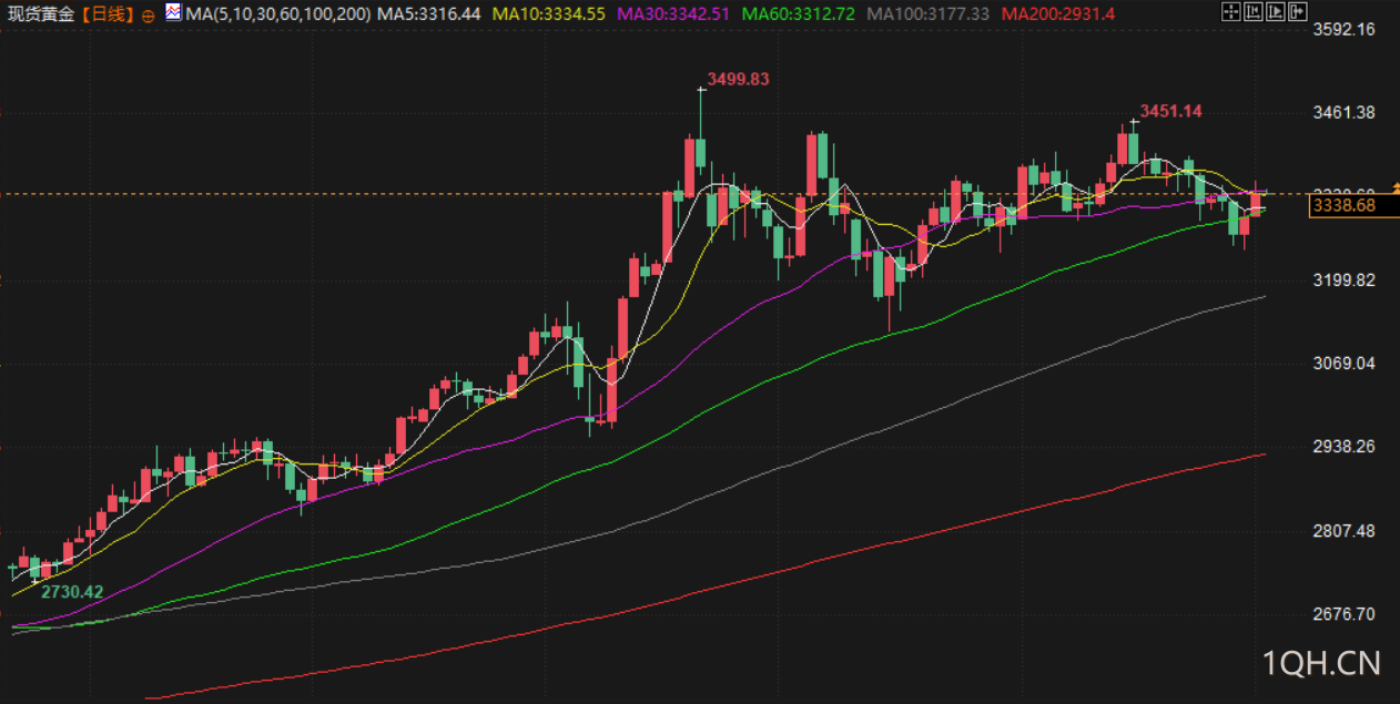 现货金上涨 1%,至每盎司 3337.09 美元,这是6月24日以来的最高水平。美国期金上涨 1.3%, 报 3350.50 美元。
