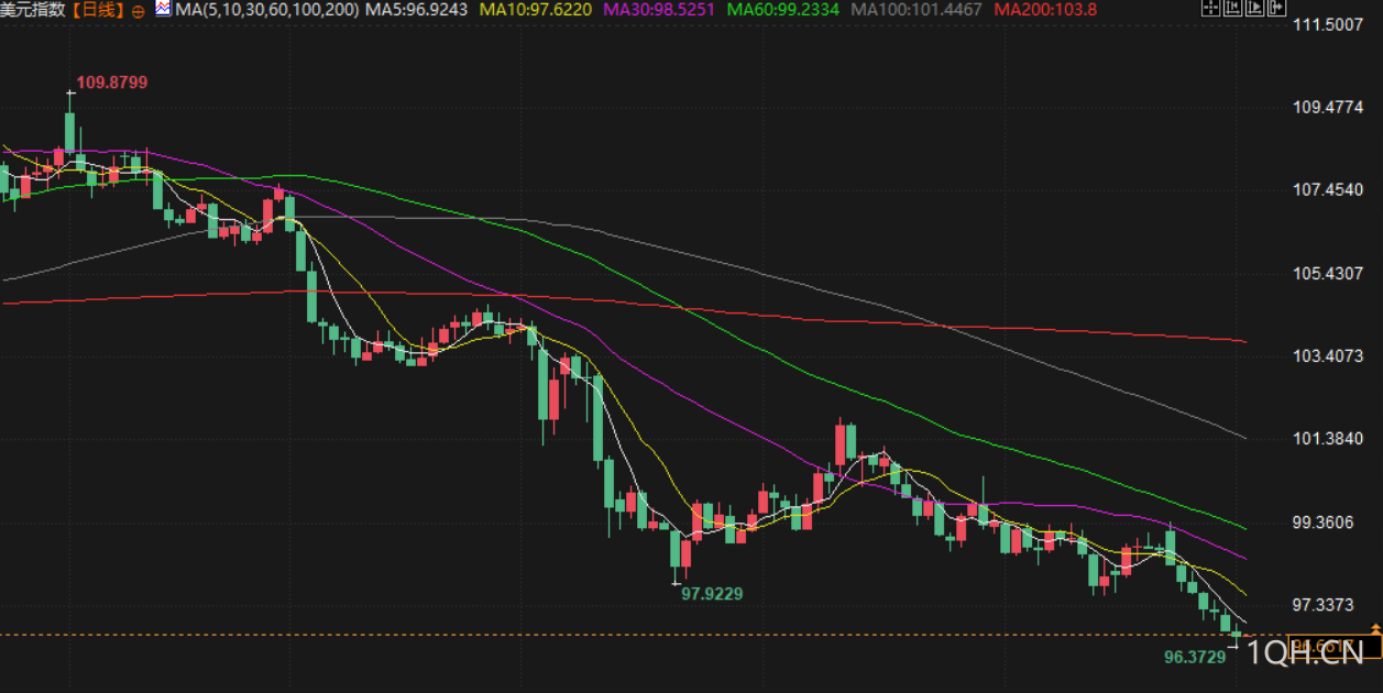 衡量美元兑一篮子货币(包括日元和欧元)汇率的美元指数纽约尾盘下跌 0.08% 至96.682 点。职位空缺数据公布后,美国公债收益率走高。指标美国10年期公债收益率上涨2.3个基点,报4.25%。
