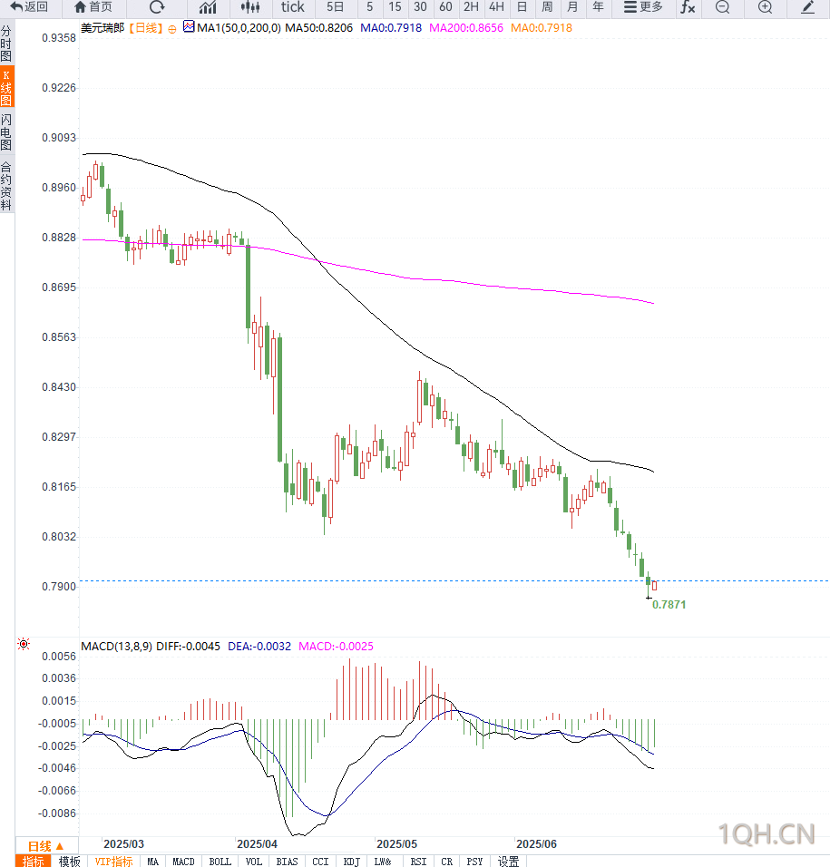 若美国就业数据继续走弱,不排除美元/瑞郎将刷新新低,甚至测试0.7800关口以下水平。从风险管理角度看,短线应关注0.7875支撑位是否失守,而中线可继续关注两国政策差异带来的趋势性机会。,