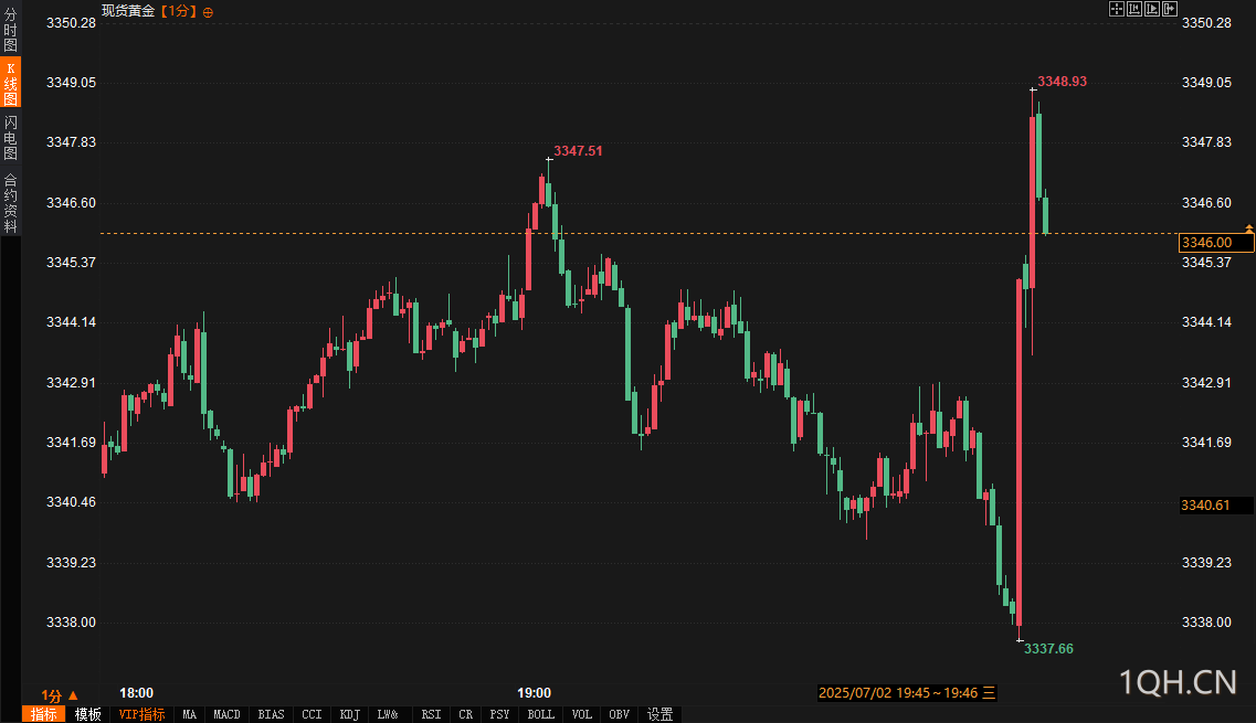 与此同时,挑战者企业裁员报告显示6月裁员人数为4.8万,月率下降48.84%,年率微降1.6%,较前值9.38万明显回落,显示裁员压力有所缓解。ADP数据公布后,美元指数短线急跌,黄金作为避险资产迅速走高。