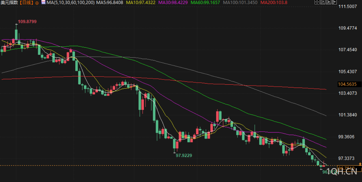 美元指数上涨0.154%,至96.786,结束连续九个交易日的跌势。受贸易不确定性拖累,美元指数经历了1970年代以来最糟糕的上半年表现,目前仍处于数年最低水平。