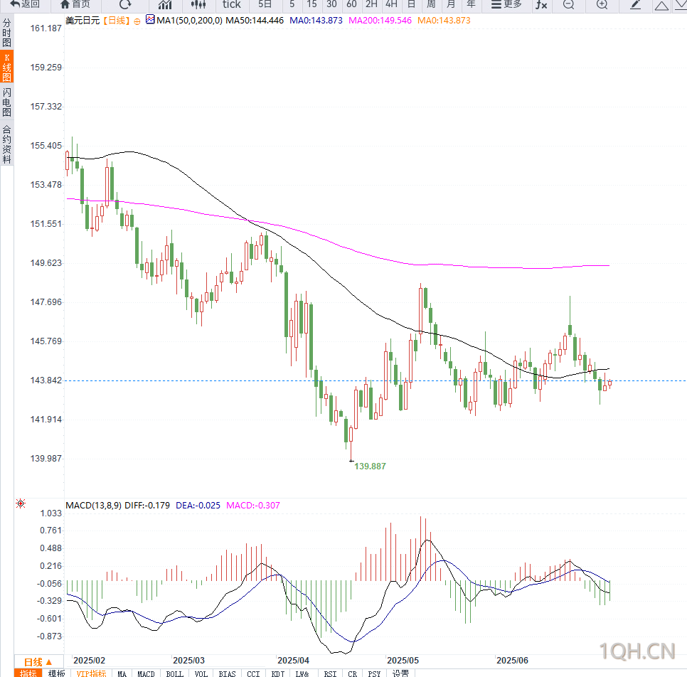 若跌破143.40-143.35支撑区域,将确认短线看空结构。届时目标下看143.00整数关口,进一步支撑位于142.65-142.70区域,为本周低点;若此区域也被有效下破,则可能指向5月低点142.10-142.15区域。