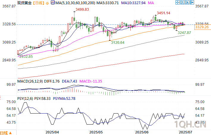 北京时间7月4日10:42 现货黄金 报 3329.26 美元/盎司,