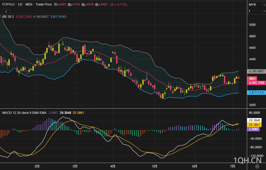 从持仓结构看,截至7月3日,BMD棕榈油合约投机净多头寸较前周增加7.2%,但商业空头套保盘同步增长4.8%,反映产业端与金融资本对价格中枢存在分歧。技术支撑关注3950-4000林吉特平台,若跌破可能引发程序化交易抛盘;上行需突破前高4186林吉特才能打开新的空间。