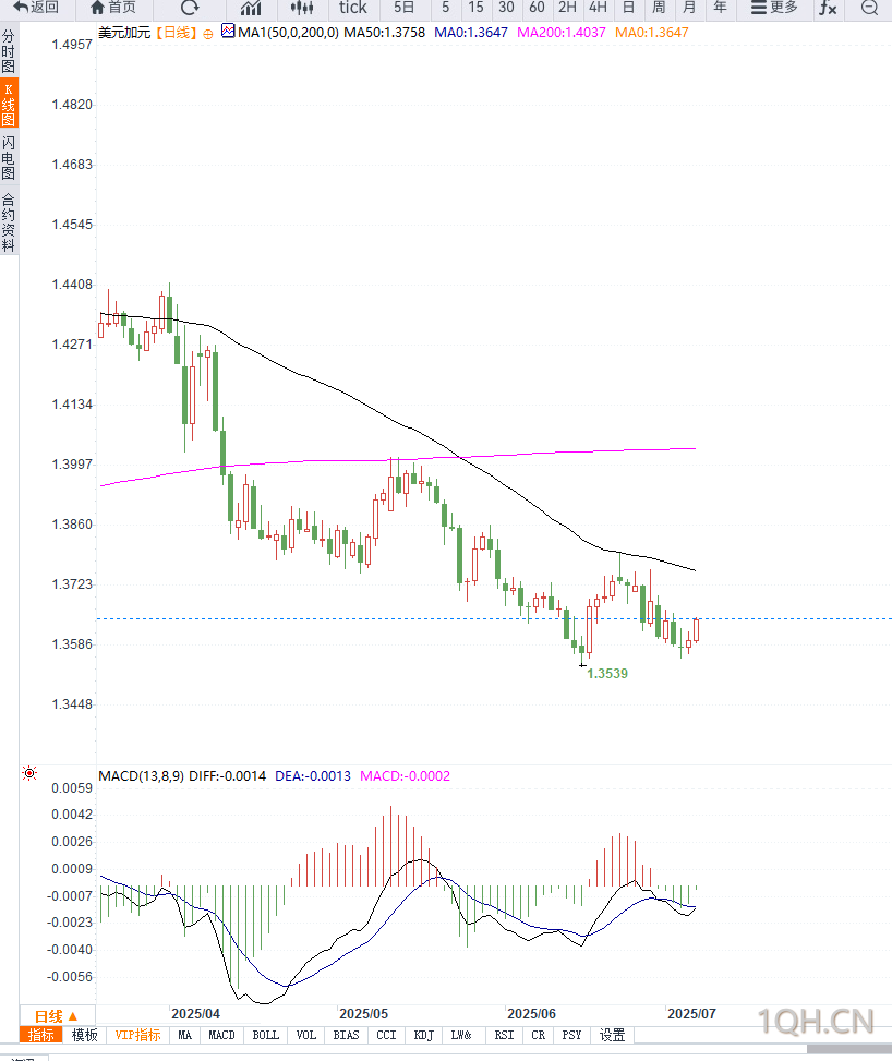 OPEC+在周六意外宣布8月起增产54.8万桶/日,引发市场对供需再度失衡的担忧。油价周一开盘即走弱,加拿大作为商品出口大国,其货币加元受油价拖累走低,成为USD/CAD反弹的直接推手。