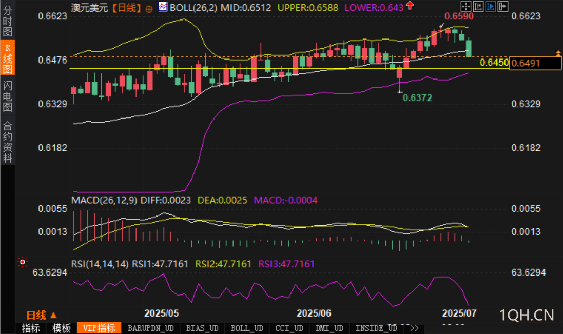当前市场推测,美国将对部分贸易伙伴施加新的进口关税,尽管财长Bessent提及“可能延至8月1日”的宽限期,但在缺乏关键数据与政策明晰前,市场情绪趋于谨慎。与此同时,澳大利亚经济对全球贸易高度依赖,全球贸易链紧张直接冲击澳元基本面,RBA(澳洲联储)也预期将在本周二下调官方现金利率25个基点,并伴随鸽派措辞。