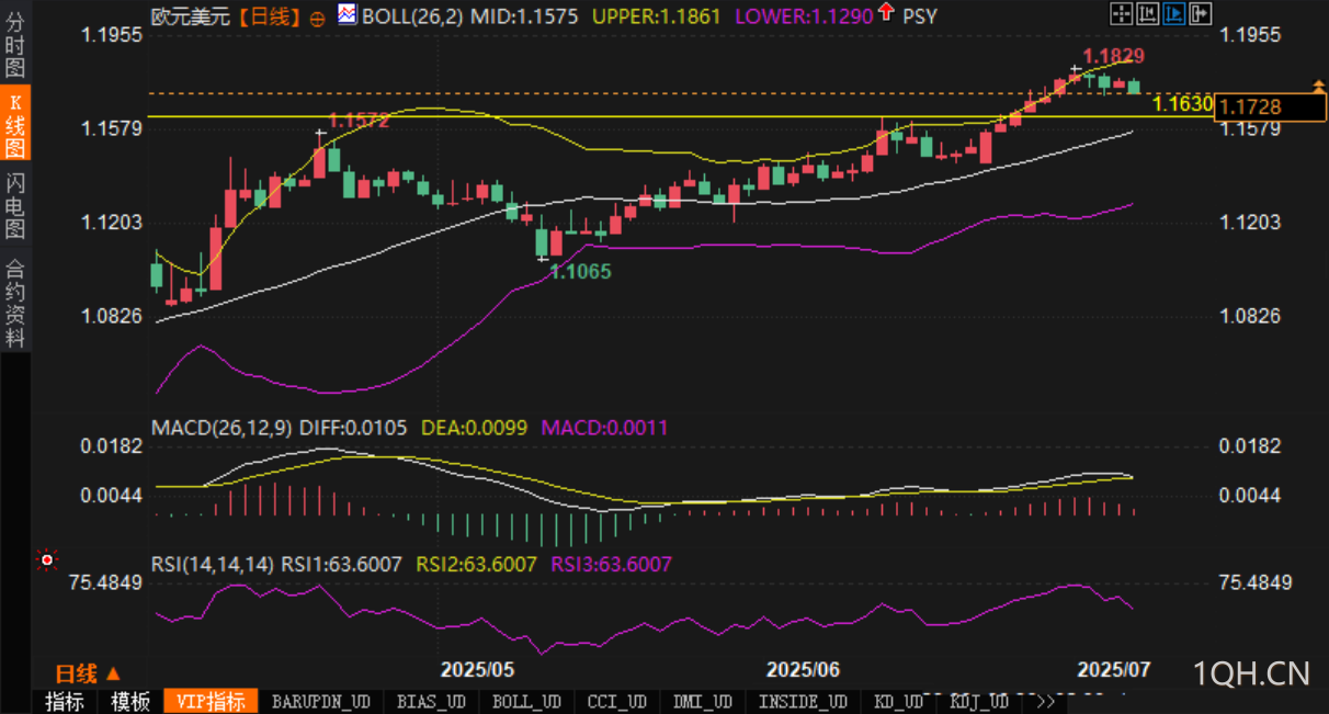 当前欧元承压回落的主要驱动因素来自美元的系统性反弹。随着7月9日临近,美国对贸易伙伴征收新一轮关税的政策不确定性骤然升温,引发全球市场避险情绪升温,美元再度获资金青睐。