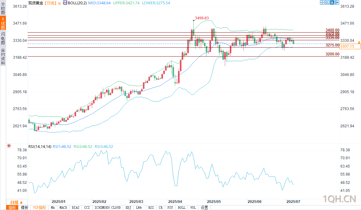 地缘政治风险:贸易紧张局势和全球不确定性再次引发市场谨慎情绪,这为黄金提供了有限支撑,但由于没有重大冲突爆发,黄金走势缺乏方向。