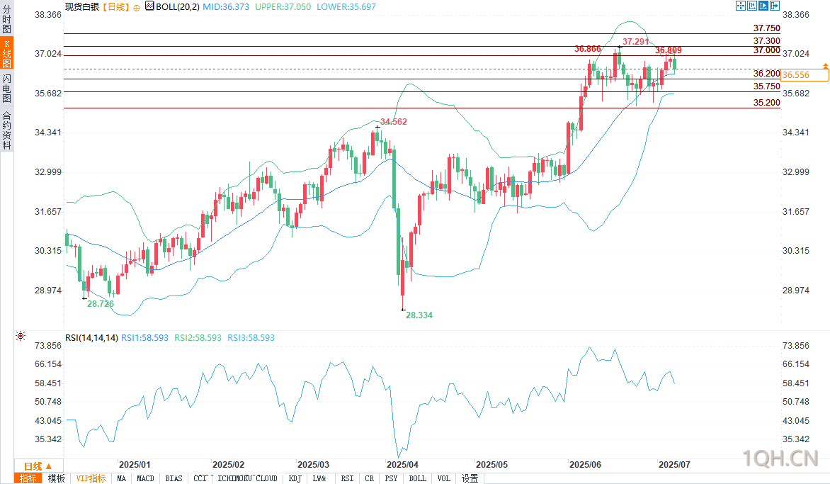 地缘政治风险:市场对全球贸易和增长前景的担忧引发了一定的避险买盘,但不足以推动白银突破上行。