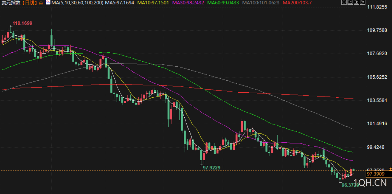 衡量美元兑六种主要货币的美元指数上涨0.51%至97.467,创一周新高。该指数延续了上周的涨势,当时显示劳动力市场具有韧性的数据,推迟了市场对美联储即将放松货币政策的预期。