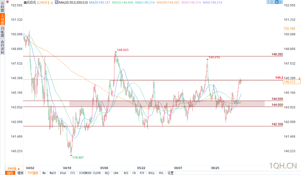 (美元/日元4小时图 来源:易汇通)