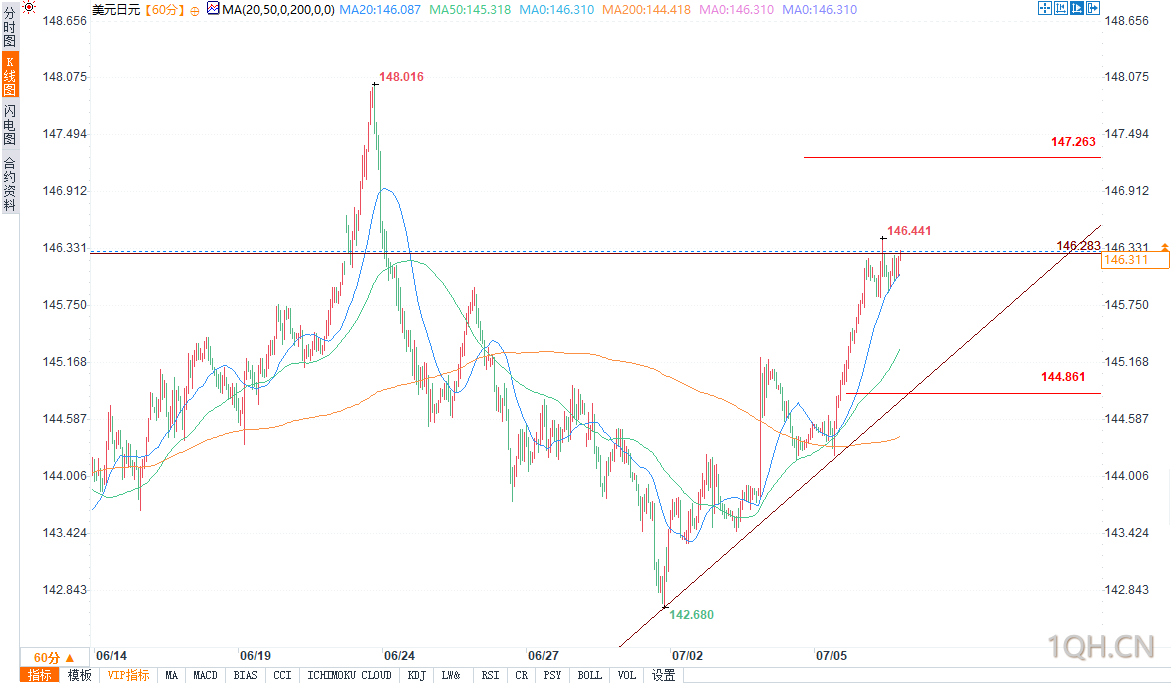 (美元/日元1小时图 来源:易汇通)