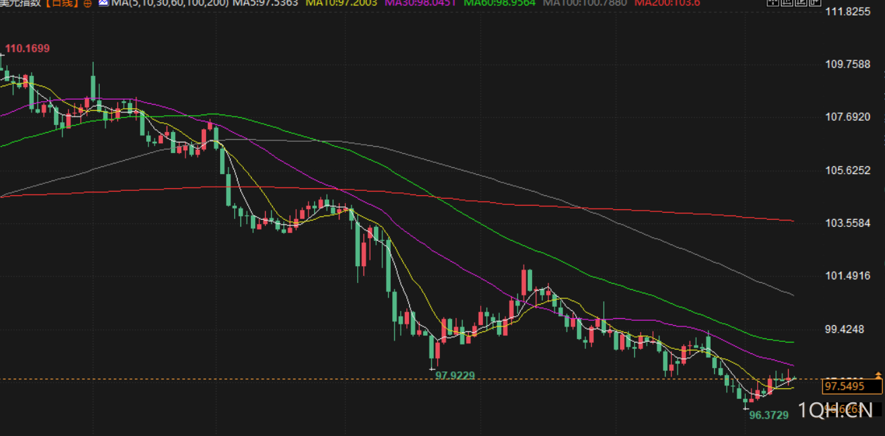 衡量美元兑六种主要货币汇率的美元指数上涨 0.27% 报 97.638,此前一个交易日下跌。