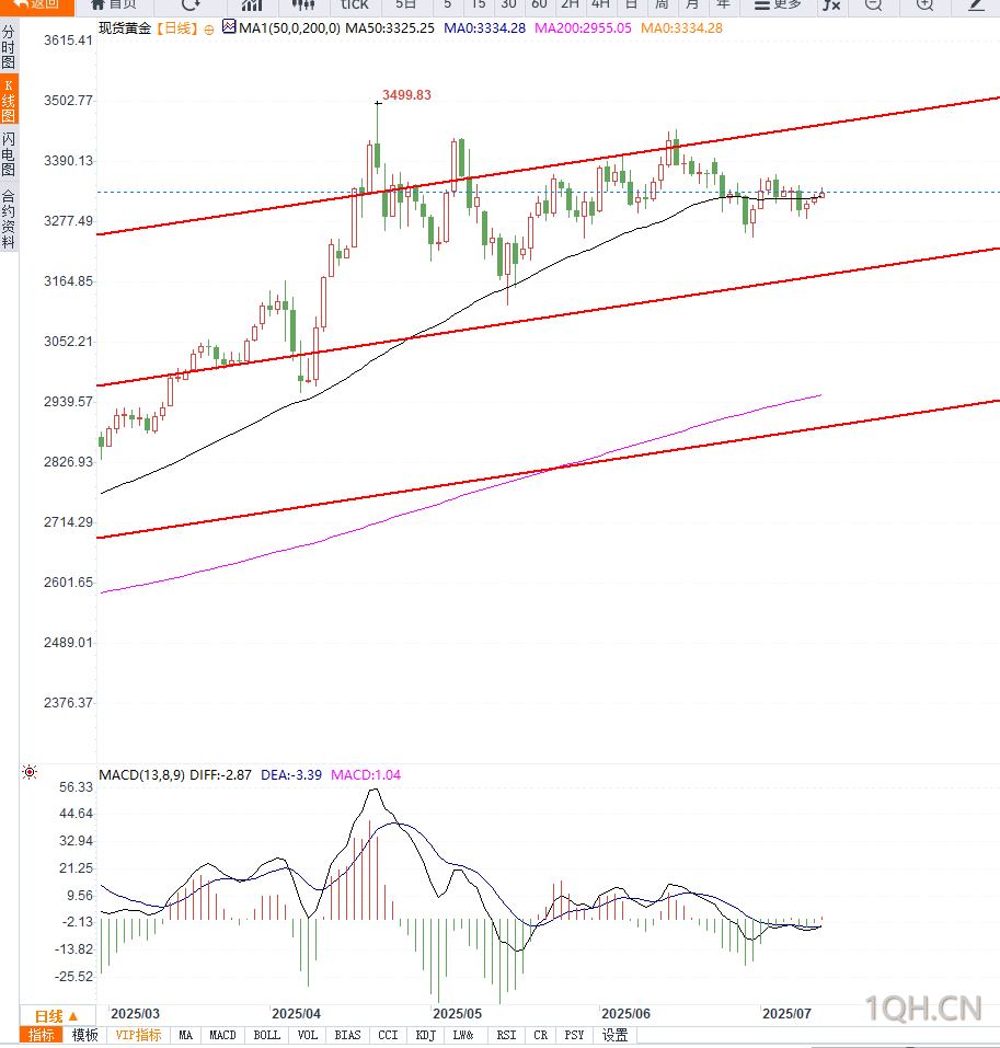 特朗普政府本周内连续发布超20项关税通知,其中包括对加拿大商品征收35%关税、对铜征收50%关税。市场对全球贸易前景的担忧迅速升温,避险资产——尤其是黄金,重新受到关注。