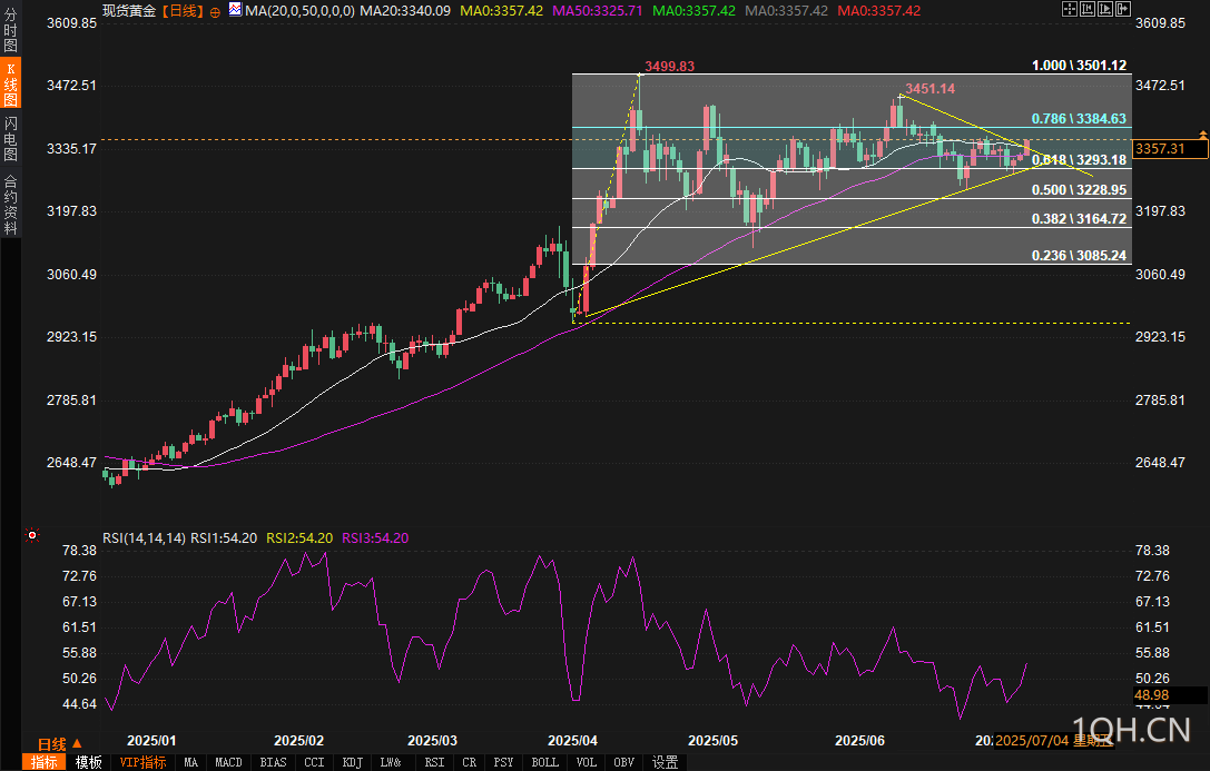 展望未来,黄金价格的走势将在很大程度上取决于关税政策的具体落实情况以及美联储的货币政策动向。若8月1日关税如期生效,全球贸易环境的恶化可能进一步推高黄金的避险需求,价格有望挑战3400美元甚至更高水平。然而,若美元因风险情绪改善或美联储鹰派信号而走强,黄金可能面临短期回调,3300美元和3292美元的支撑位将成为关键。技术面上,黄金当前的多头动能较强,但需警惕3400美元附近的阻力位可能引发的获利了结压力。