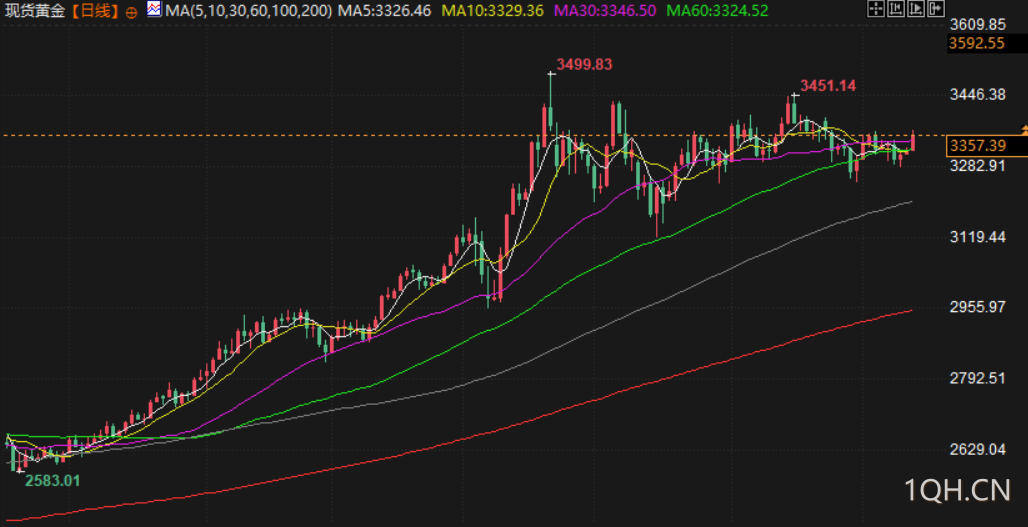 现货金上涨 1%,至每盎司3356.93 美元,稍早触及6月24日以来最高。美国期金收涨1.4%,报3371.20 美元。尽管特朗普的关税再次笼罩全球,但本周金价涨幅有限,上涨不足1%。