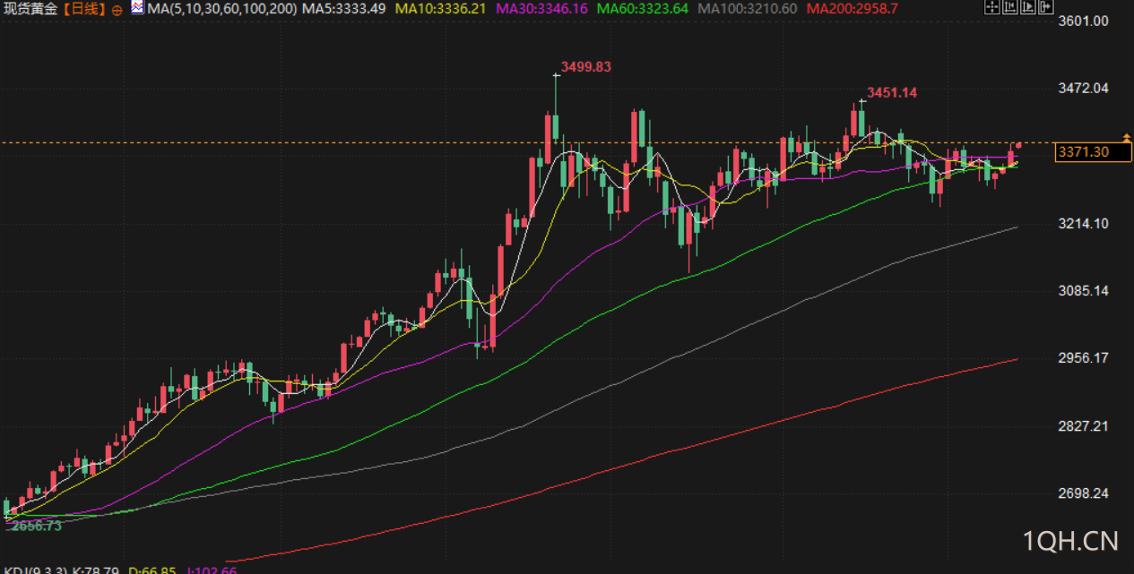 现货金上涨 1%,至每盎司 3356.93 美元,稍早触及6月24日以来最高。美国期金收涨 1.4%,报 3371.20 美元。