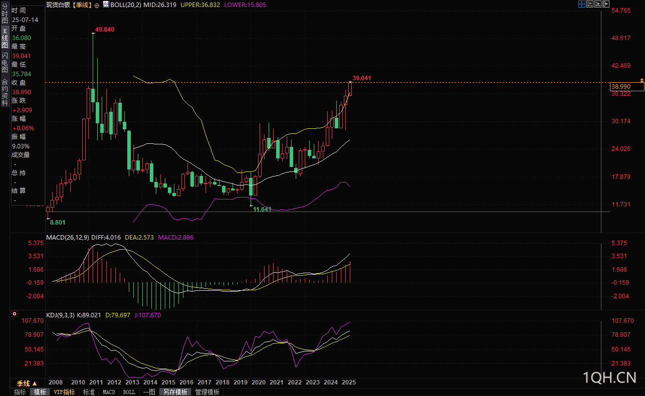 上周早些时候,银价试图上破每盎司37美元,但涨势遭遇了强劲的抛售压力,但金价仍维持在每盎司36美元上方的健康支撑位。到上周四,投资者又在37美元的水平上大举买入,上周五的后续买盘将银价推高至每盎司38美元以上,当天涨幅3.84%,收于38.407美元。周一(7月14日)白银继续创出14年来39.04美元的新高。