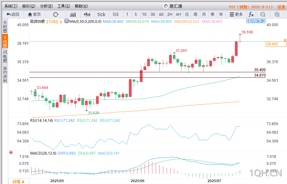白银的跑赢表现暗示资金正转向该金属,只要未跌破关键支撑位37.23美元,看涨情绪就将保持完好。