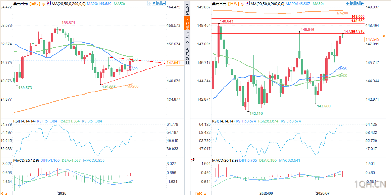北京时间17:37,美元/日元报147.673/683,跌幅0.02%。,