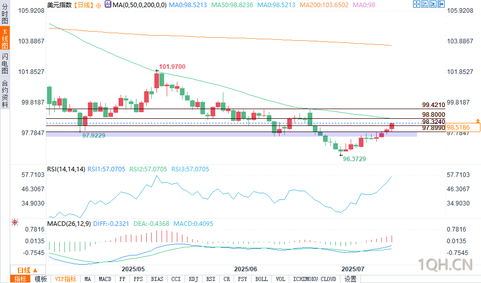 若持续突破98.80,将为迈向99.421扫清道路。不过,交易员必须对美联储的言论和政治风险保持警惕,这些因素可能盖过技术面影响,导致利率预期迅速重定价。,