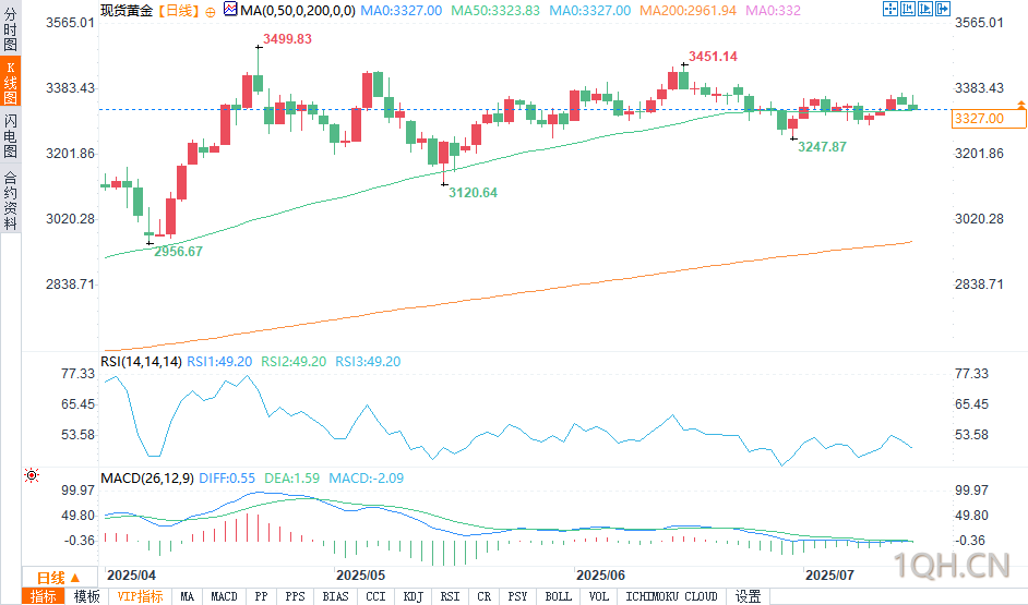 黄金价格仍运行于自5月中旬以来的熟悉区间内。