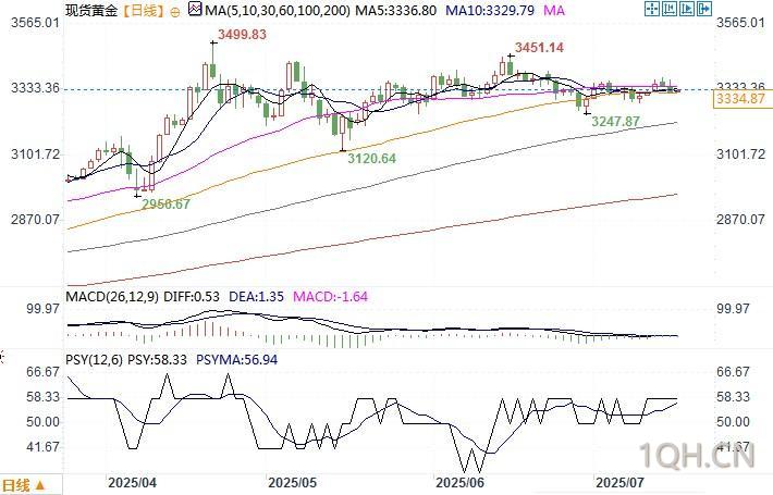 北京时间7月16日11:53 现货黄金 报 3334.87 美元/盎司