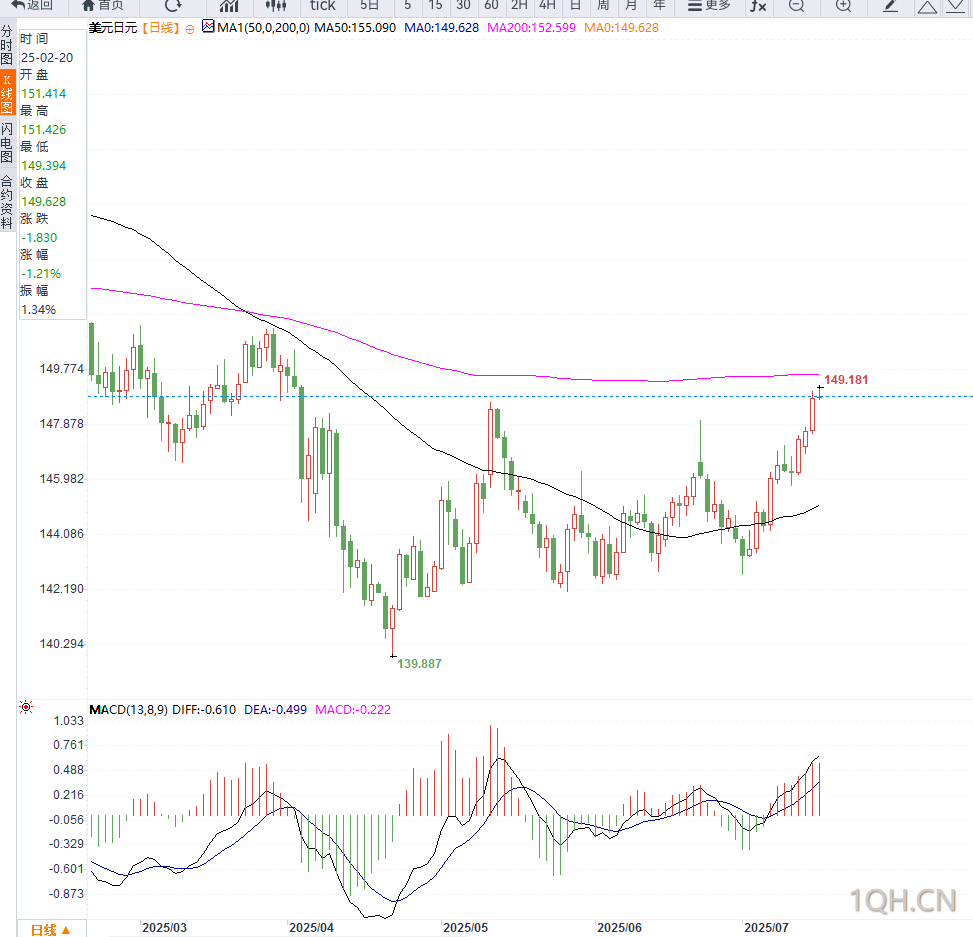 与此同时,美国总统特朗普宣布将自8月1日起对日本出口商品全面加征25%关税,尤其针对农业领域谈判僵局所引发的外部压力,使日元面临多重利空。