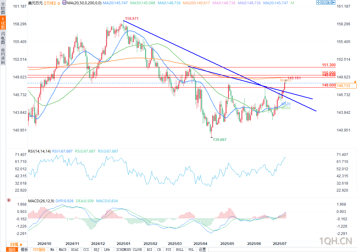 总结美元/日元当前受美国收益率上升和日本政治经济不确定性双重推动,技术面突破148.00进一步确认看涨趋势,短期目标指向151.30。但日本选举、BoJ政策及关税相关进展可能带来双向波动,交易者需保持灵活并严格管理风险。