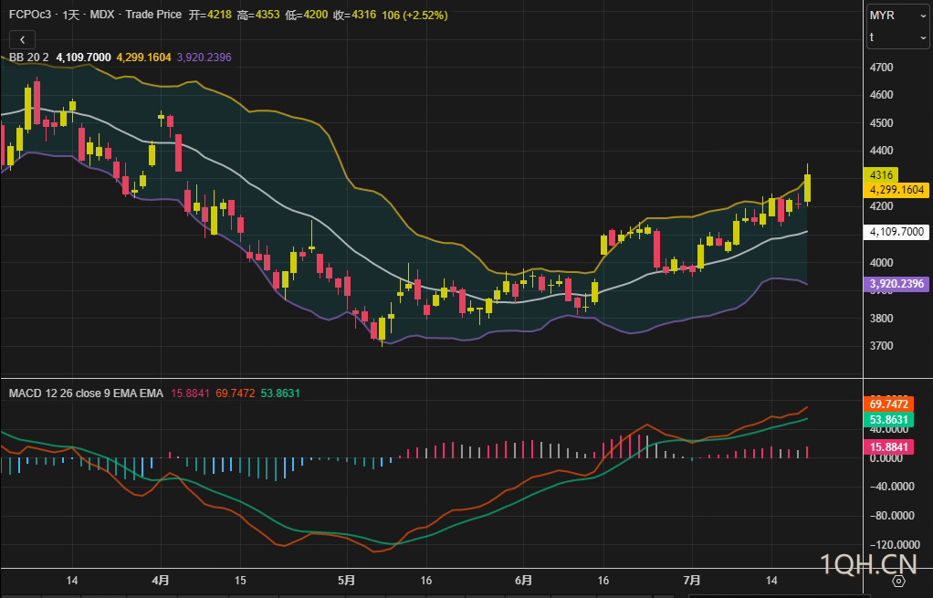 尽管价格走强,短期出口数据疲软与政策成本上升构成隐忧。独立检验公司AmSpec Agri Malaysia数据显示,7月1-15日马来西亚棕榈油出口环比6月同期下降5.3%,另一机构Intertek Testing Services统计的降幅达6.2%。与此同时,马来西亚将8月毛棕榈油参考价上调,出口关税从7月的8.5%提高至9%,可能进一步抑制买家采购意愿。