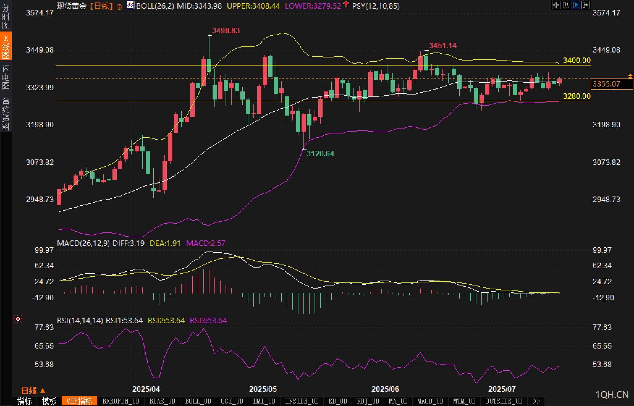 支撑与阻力:目前下方关键支撑位在3280美元;上方阻力关注3400美元整数关口,突破后有望测试3451美元和3499美元的前期高点。