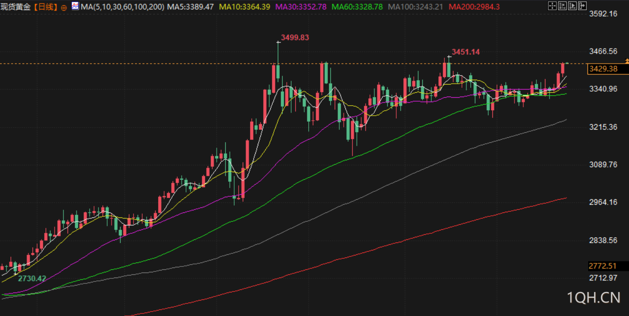现货金上涨 1%,触及每盎司3428.84 美元的6月16日以来最高。美国期金上涨1.1%,报3443.70 美元。指标美国 10 年期公债收益率跌至近两周最低,使得不孳息黄金更具吸引力。