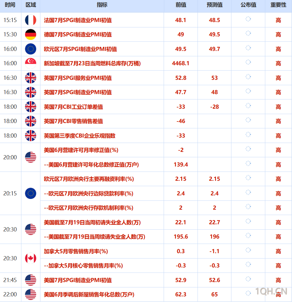 日内重点关注