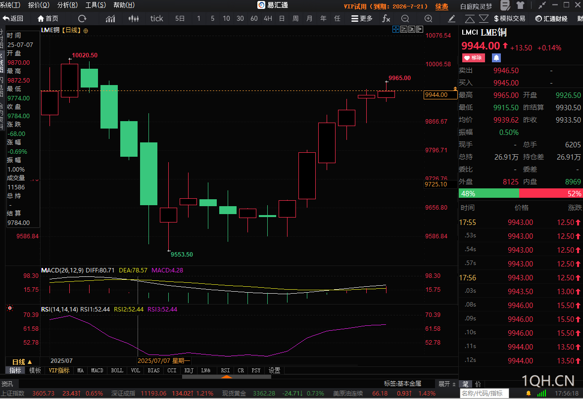 北京时间17:58,LME铜价现报9949.00美元/吨。