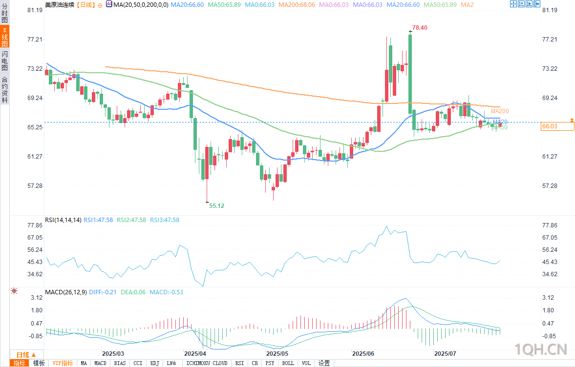 北京时间18:29,WTI原油报66.04美元/桶,涨幅1.21%。,