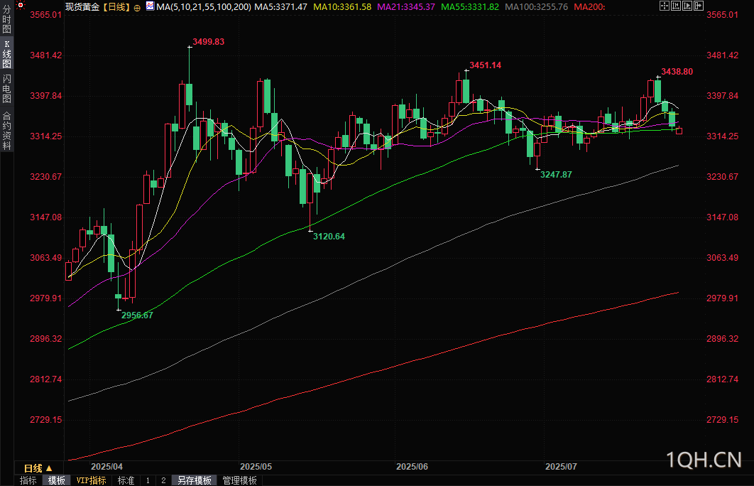 美元作为全球储备货币,其走势对黄金价格的影响至关重要。上周,美元指数从逾两周低点反弹,显著推高了黄金对海外买家的成本。美元的走强不仅源于美国经济数据的稳健表现,例如6月核心资本财订单的温和增长,还得益于市场对美欧贸易谈判乐观情绪的消化。Zaner Metals副总裁Peter Grant指出,美元的反弹直接削弱了黄金的吸引力,因为更高的美元价格让持有其他货币的投资者望而却步。这种短期压力使得金价在3400美元关口受阻后迅速回落,凸显了美元对黄金价格的“紧箍咒”效应。