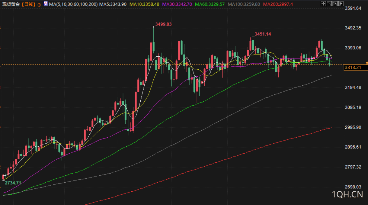 现货金下跌 0.8%,报每盎司 3310.45 美元,稍早触及7月9日以来最低的 3301.29 美元。美国期金下跌 0.7%,结算价报每盎司 3311.2 美元,美元指数升至逾一周最高。