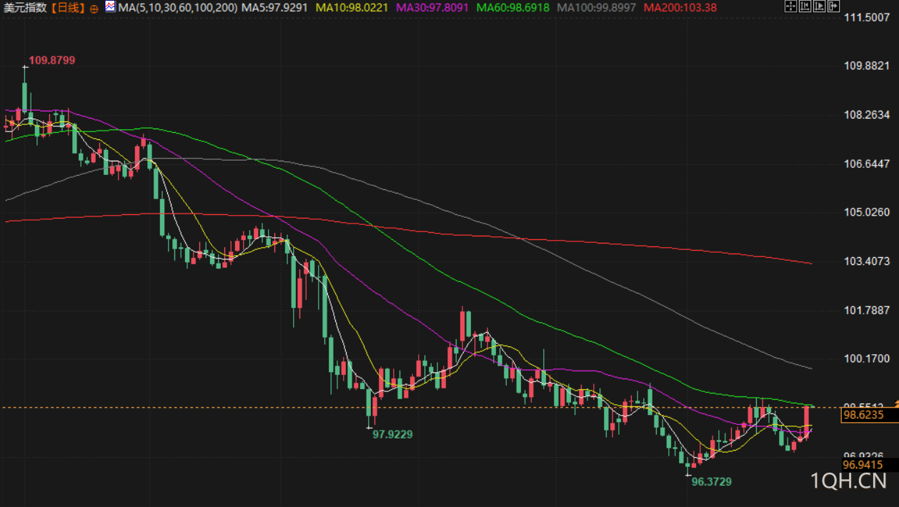 美元兑避险货币瑞士法郎上涨,报 0.80325 法郎,涨幅为 1%。美元兑日元涨0.59%,报148.535。