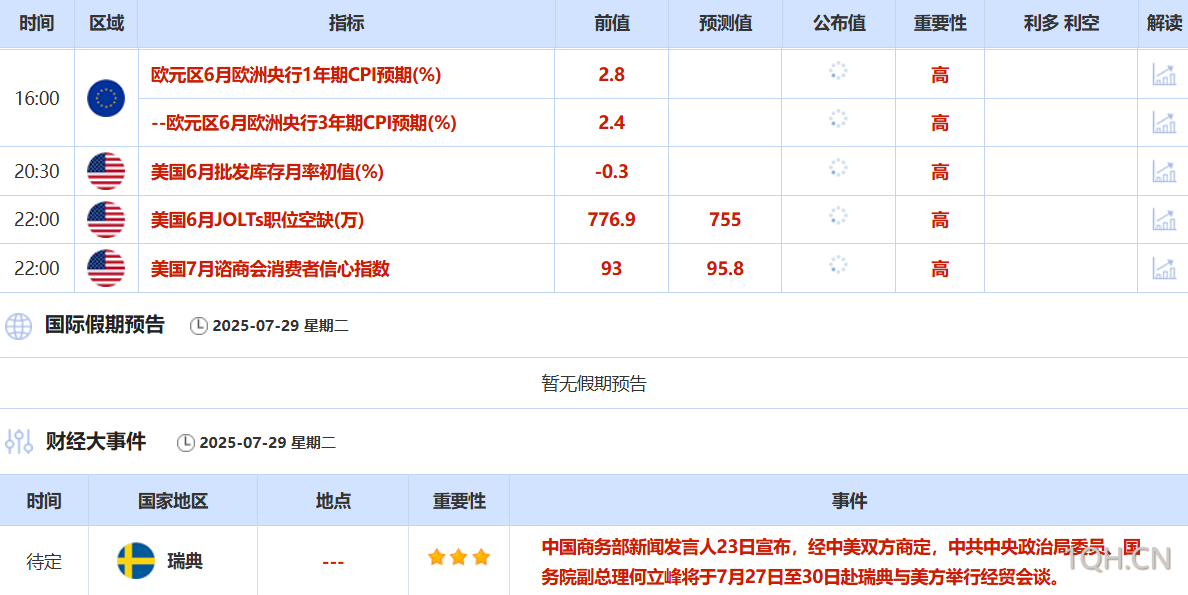 日内重点关注